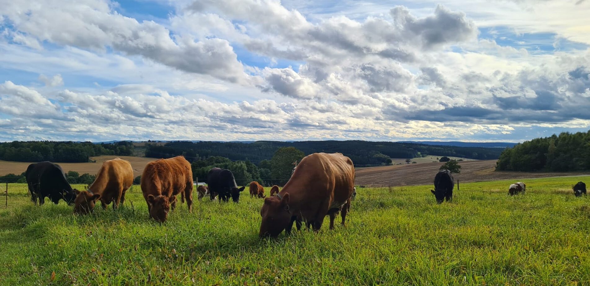Im Mittelpunkt steht bei uns die Rinderhaltung. Auf unseren Flächen bieten wir unseren Mutterkühen und ihren Kälbern großzügige Weideflächen. Von Frühling bis Herbst verbringen sie ihre Zeit auf den Wiesen rund um den Hof.