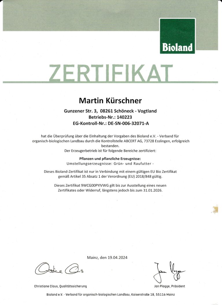 Regelmäßig wird unser Bauernhof von externen Stellen überprüft und fortlaufend zertifiziert. Damit garantieren wir die ständig hohe Qualität unserer Futtermittel, unserer Produktions- und Vertriebswege, das Tierwohl und die Tiergesundheit auf unserem Hof.